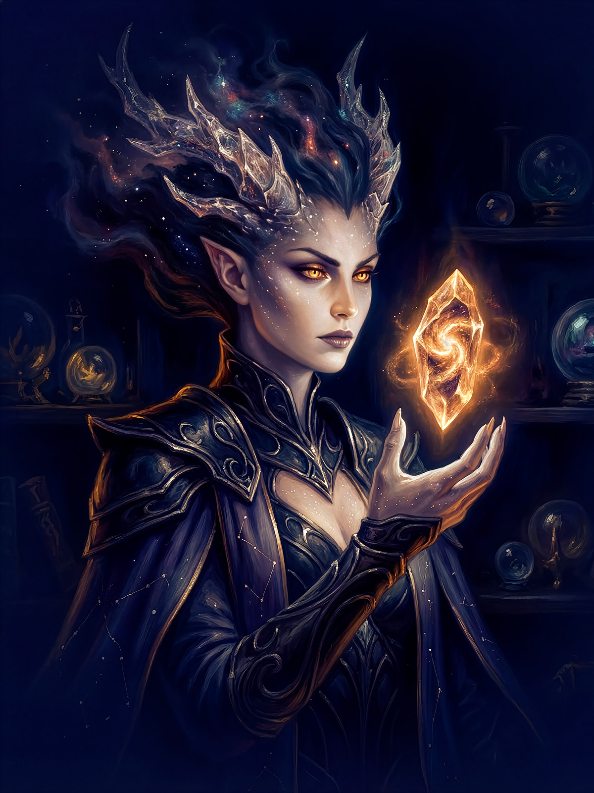 Drifting between countless worlds, Kogosa seeks for rare, fleeting bursts of emotion. These Vortexes are pure, untamed energy of a moment in time. She seals them in Crystals of Eternity to preserve them before they disappear forever.
